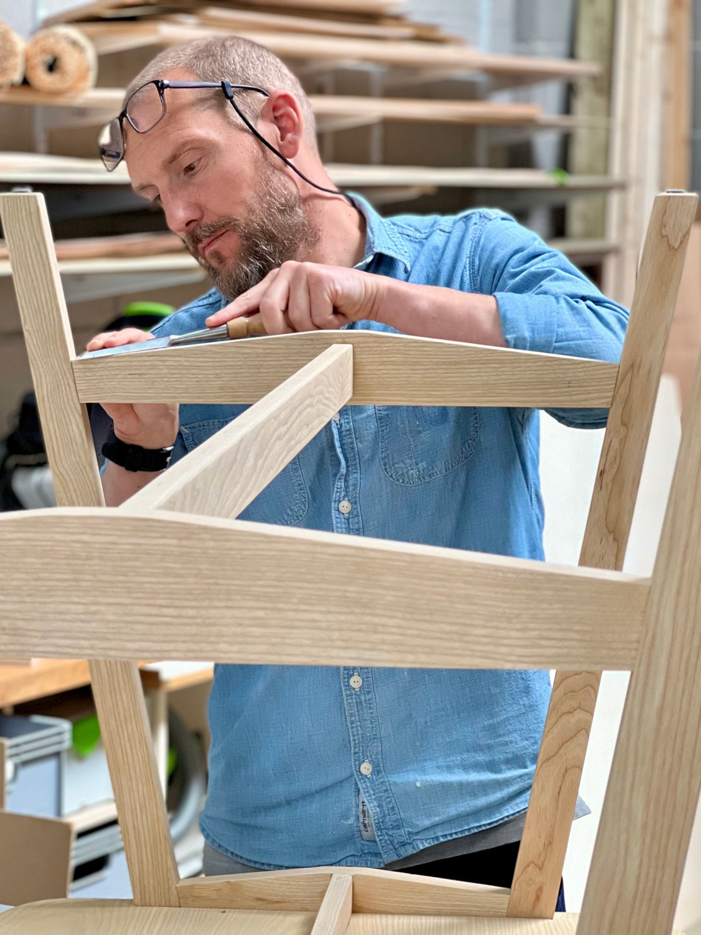 His work draws on Scandinavian restraint, international experience and a training in traditional cabinetmaking, exploring material, proportion and subtle innovation in furniture and objects made to endure.